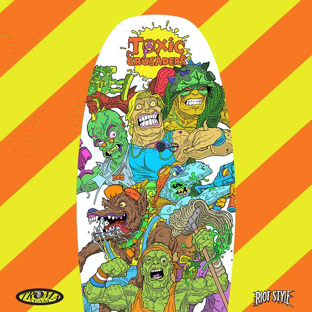 Toxie + The Crusaders ride again! Catch this EXCLUSIVE officially licensed, limited edition Troma Films x Riot Style Pool Deck Skateboard!